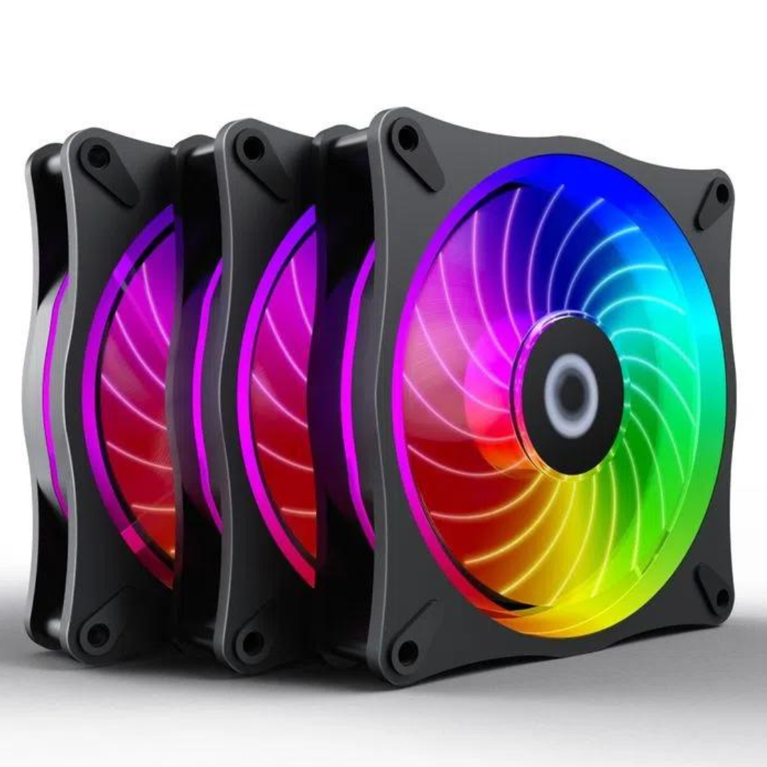 "Kit Carius 3 en 1, Mando a distancia con más de 100 modos de ajuste, diseñado para un fácil montaje y uso universal para todos los tipos chasis de PC, aspas de los ventiladores transparentes. Dimensiones: 120*120*25 mm Velocidad de 110 Rpm +/- 10 Flujo de aire 31.5 Cfm max Nivel de ruido 25.6 dBA Compatible con Board de sistema AURA"